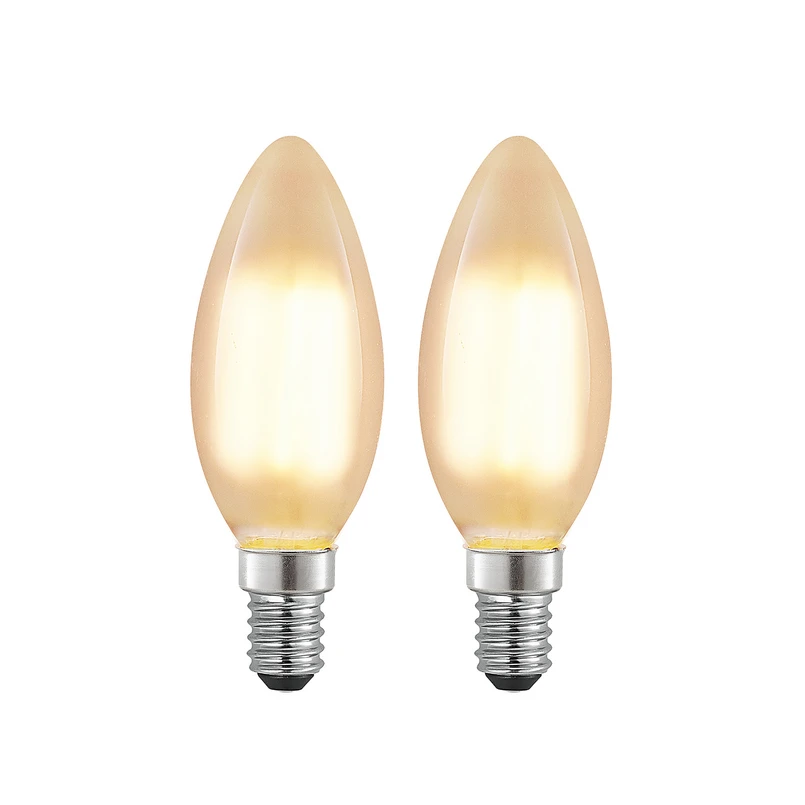 Żarówka świeca LED E14 4W, ciepła biel (2700 K), ściemniana, z matowym szkłem w zestawie 2 Ta żarówka LED zapewnia dobre oświetlenie, które nie oślepia dzięki matowemu szkłu. Jej wydajność jest podobna do żarówki tradycyjnej o mocy 40 W, choć technologia LED jest bardziej ekonomiczna pod względem zużycia energii. Jasność lampy można regulować za pomocą standardowego ściemniacza ściennego - Ściemniana z trybem odcinania fazy - Dostarczana w praktycznym zestawie 2 sztuk