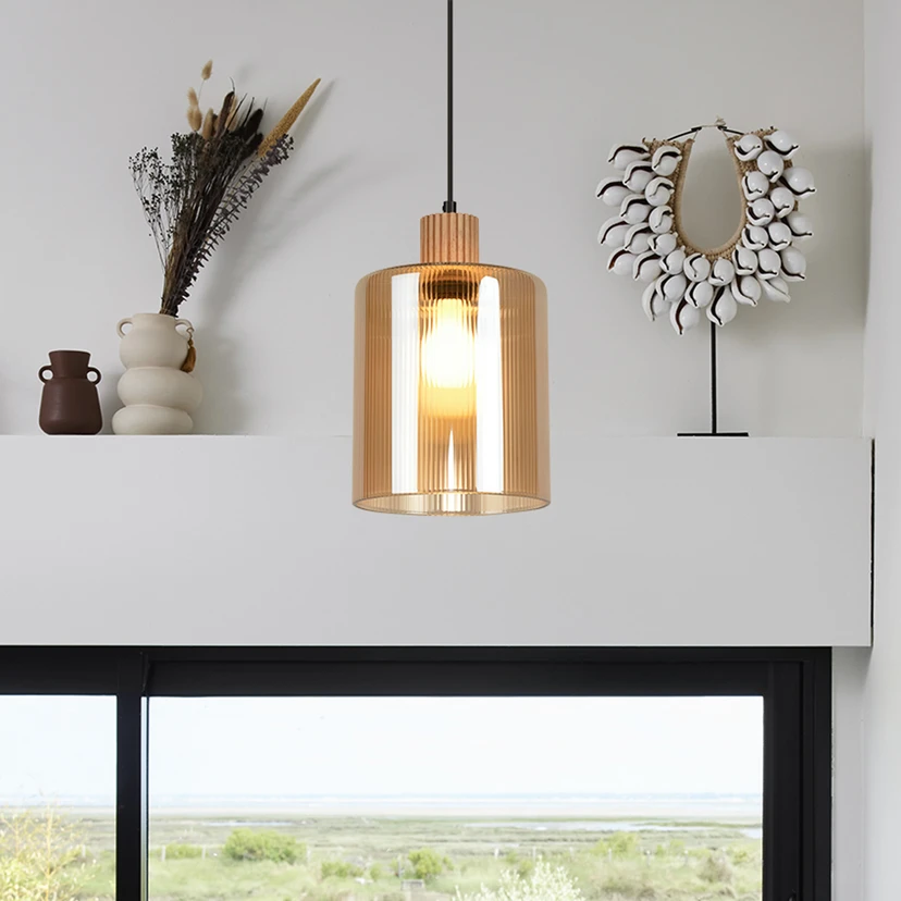 Żyrandol Giovanni łączy takie materiały jak szkło, drewno i metal, tworząc stylowy obiekt designerski. Bursztynowa, żłobkowana powierzchnia szkła zapewnia ciepłe, nastrojowe światło, które nadaje pomieszczeniom, takim jak salon, jadalnia, kuchnia czy przedpokój, przytulną atmosferę. Naturalny akcent drewna uzupełnia nowoczesną stylistykę i tworzy harmonijne połączenie elegancji i naturalności.