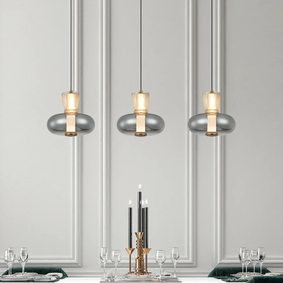 Żyrandol LED Sire łączy w sobie materiały takie jak metal i szkło z niezwykłym wzornictwem. Połączenie kolorów dymnej szarości, bursztynu, czerni i brązu tworzy harmonijną kompozycję, która nadaje każdemu pomieszczeniu wyjątkową atmosferę. Zintegrowane źródła światła LED zapewniają światło w ciepłej bieli, które tworzy przyjemne i przytulne oświetlenie.
