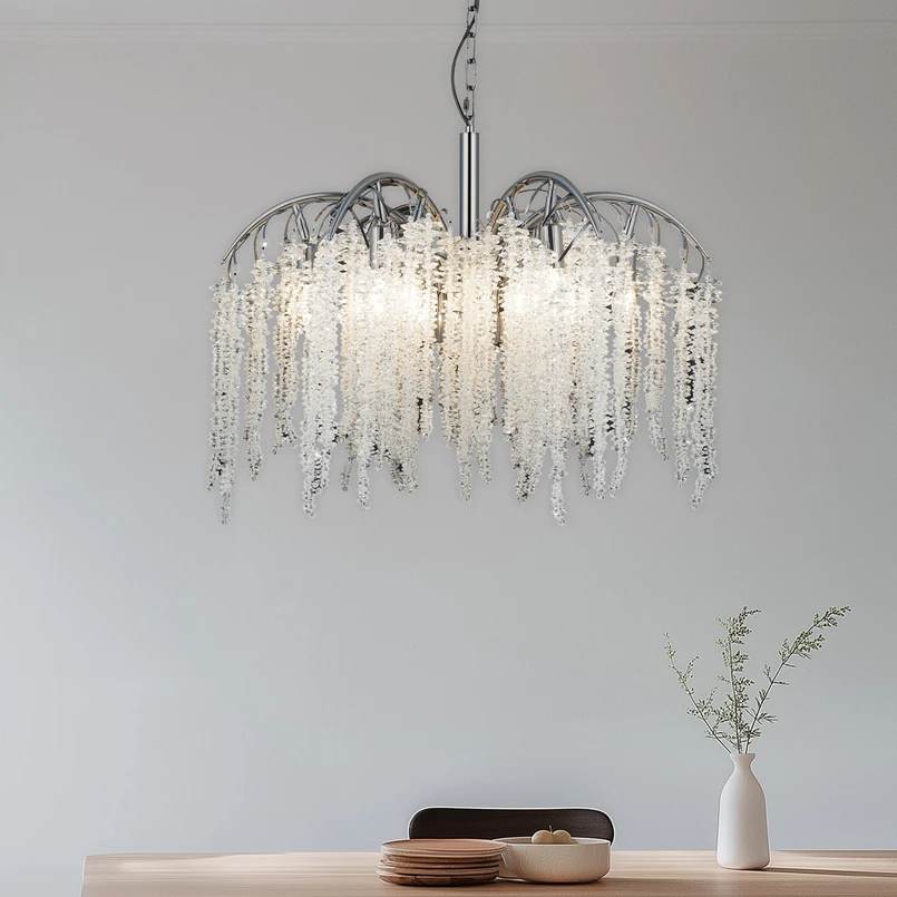 Żyrandol Grape z czarną perłową ramą i zawieszką ze szkła kryształowego Poznaj elegancję żyrandola Grape, który dzięki 12-punktowej konstrukcji i błyszczącemu szkłu kryształowemu zanurzy każde pomieszczenie w ekskluzywnej atmosferze. Wyprodukowany w Europie żyrandol jest synonimem jakości i stylu. Czy to w salonie, jadalni czy przedpokoju - wyrafinowane połączenie czarnego perłowego metalu i kryształowego szkła doda wyjątkowego charakteru każdemu pomieszczeniu. Odkryj, jak żyrandol Grape na nowo definiuje grę światła w Twoich pomieszczeniach.